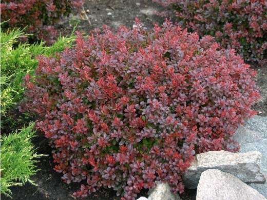 Барбарис Тунберга "Bagatelle" наиболее компактный барбарис из всех сортов, используется в смешанных посадках, в рокариях, в альпийских горках.