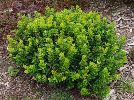 Барбарис Тунберга "Kobold"карликовый компактный сорт с салатовым оттенком листвы великолепно впишется в рокарий, альпийскую горку и украсит собой любые смешанные посадки.Высота и диаметр взрослого растения достигает 0,5 метра, крона компактная подушкообразной формы. Побеги короткие, красно-коричневых оттенков, покрыты шипами. Листва мелкая нежно-зеленая летом, осенью окрашивается желто-оранжевый цвет. Годовой прирост составляет приблизительно 3 см.