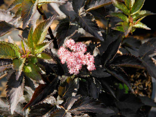 Цветки светло-розовые собираются в соцветие щиток размером 10–20 см. Цветение в июне-июле. Имеют насыщенный аромат, могут цвести до 25 дней, плоды чёрного цвета, блестят, сочные и съедобные. Период созревания конец августа начало сентября.