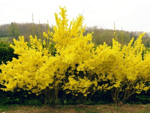 Форзиция Форчуна – род небольших деревьев и кустарников семейства маслиновые, цветущих ранней весной яркими желтыми цветками.Высота от 1 до 3 метров, ширина до 2м. Для растения характерно появление листьев по окончании цветения. В осенний сезон листва меняет свою обычную окраску на тёмно-сиреневую.