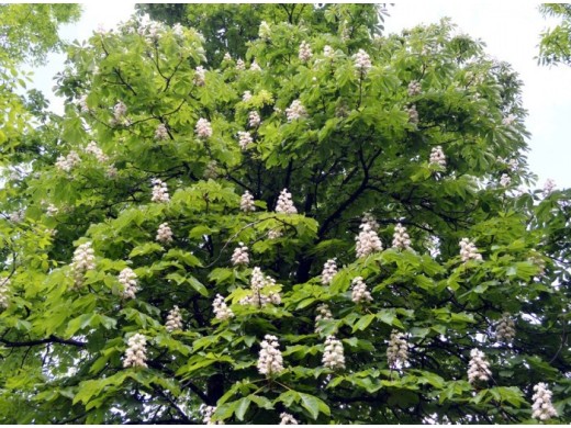 Каштан конский - очень популярное листопадное дерево в садово-парковом ландшафте. Привлекает внимание эффектным цветением.Дерево с густой куполообразной кроной, высотой до 15 метров. Листья крупные, пальчато-сложные с 5–7 листочками. Каждый листочек 13–30 см в длину, 3–10 в ширину, край листа зубчатый.