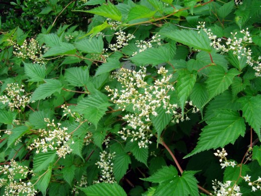 Зацветает в июле, цветки белые, мелкие, собраны в рыхлые метёлки на концах побегов.