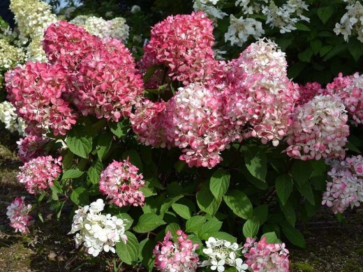 Соцветия крупные длинной 20-30 см, пирамидальные. Цветки в начале белые, ближе к осени приобретают насыщенный малиновый оттенок.