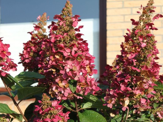 Длительное цветение крупными соцветиями длинной до 30 см. Цветки с начала цветения и до конца июля - белые, затем розовеют, а в сентябре становятся бордово-красного цвета.