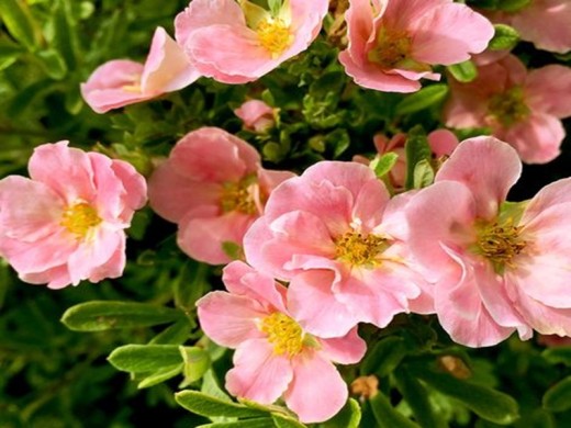 Лапчатка кустарниковая "Pink Paradise" — компактный, изящный кустарник с обильным цветением, украсит любой сад нежно-розовыми цветками. Идеально подходит для групповых и смешанных посадок, бордюров, каменистых садов и композиций с хвойными или травянистыми растениями.Высота куста около 80 см, ширина — до 120 см. Крона густая, полураскидистая. Листья мелкие, темно-зеленые, длиной до 3 см, слегка опушённые.