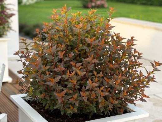 Пузыреплодник калинолистный Sweet Cherry Tea - этот новый сорт пузыреплодника имеет множество преимуществ! Нежные перистые листья начинают весенний сезон теплым красновато-оранжевым сиянием, а затем стареют до насыщенного пурпурного цвета. Рекомендуется для оформления миксбордеров, каменистых садов, берегов водоемов и формирования ярких невысоких живых изгородей.Куст достигает до 1,2 м в высоту и 1 м в диаметре, побеги прямые, сильные хорошо держат плотную округлую крону.