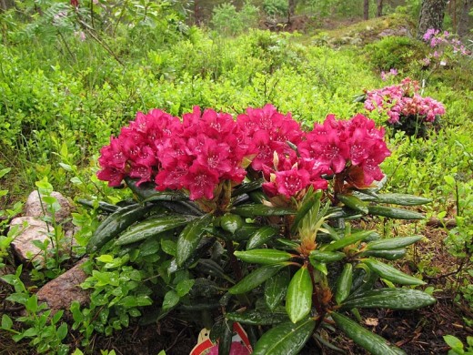 Рододендрон гибридный "Kazimierz Wielki"- относится к группе королевских зимостойких рододендронов. Прекрасный выбор для тех, кто хочет добавить цветовой акцент у себя в саду, украсить зону около водоема или создать японский уголок на приусадебном участке.Вечнозеленый кустарник вырастает к 10-ти годам высотой до 1.5 м и диаметром кроны до 1,2-1.6 м. Побеги толстые, жёсткие, красно-коричневые. Листья тёмные, продолговатые, в форме лодочки. Куст средней силы роста.