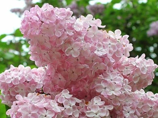 Кустарник среднего размера (200-240 х 150-160 см), раскидистый, средней густоты. Листья средние, сердцевидные, матовые, волнистые, светло-зеленые, молодые с антоциановым оттенком. Побеги оливково-зеленого цвета, длина цветоносных 30-35 см. Цветоносы прочные. Соцветия крупные, размером 22-25 х 20-23 см, состоят из 3-5 пар широкопирамидальных метелок, плотные. Среднее количество цветков в соцветиях 1100-1550 шт. Бутоны темно-розовые с шоколадным оттенком, иногда зеленоватые на вершине. Цветки крупные, диаметром 2,7-3,0 см, немахровые, нежно-розовые с палевым оттенком (отгибы венчика более светлые по краям), с нижней стороны с жемчужным отливом. Отгибы венчика обратнояйцевидной формы с округлым кончиком. Окраска цветков не выгорает. Аромат сильный. Цветение обильное. Сорт устойчив к болезням и вредителям, зимостойкий, жароустойчивость и засухоустойчивость средняя. Бутоны и цветки устойчивы к поздневесенним заморозкам.