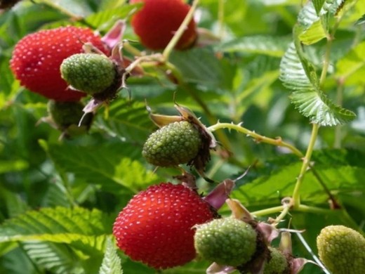 Тибетская малина, также известная как земляничная малина, представляет собой невысокий (до 1 метра) кустарник, который отличается декоративными плодами, напоминающими клубнику, и своеобразным вкусом, сочетающим в себе оттенки малины, земляники и, отдаленно, ананаса.