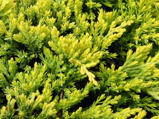 Можжевельник горизонтальный «Golden Carpet» - популярный, стелющийся, хвойный кустарник, ценящийся за свою способность образовывать плотный, низкий ковер и за яркую золотисто-жёлтую окраску хвои. Благодаря быстрому росту вширь и эффектному цвету он является одним из лучших почвопокровных растений для создания солнечных пятен в саду, декорирования склонов, рокариев и альпинариев.Форма кроны очень плотная, густая, стелющаяся, ковровая, с побегами, равномерно распространяющимися по поверхности почвы. Растет умеренно быстро, годовой прирост в ширину составляет 10-15 см, в высоту – 5-8 см. Максимальные размеры во взрослом состоянии – около 0.1-0.2 м в высоту и до 1.5-2.0 м в диаметре. Хвоя чешуевидная, мелкая, мягкая на ощупь. Её главная особенность – яркая золотисто-жёлтая окраска в течение всего тёплого сезона, которая наиболее интенсивна на молодых приростах и при посадке на солнце. Осенью и зимой хвоя приобретает привлекательные медные, бронзовые или лёгкие оранжевые оттенки. Шишки очень редкие, мелкие, шаровидные, синевато-чёрные.