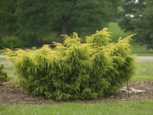 Можжевельник китайский «Kuriwao Gold» - популярный, среднерослый, хвойный кустарник, ценящийся за свою живописную, ажурную, вазообразную форму и яркую золотисто-желтую окраску молодых приростов. Благодаря контрастной игру цвета и ажурной текстуре он стал излюбленным акцентным растением для солнечных смешанных композиций, каменистых садов, верещатников и одиночных посадок на газоне.Форма кроны раскидистая, асимметричная, вазообразная или фонтанообразная, с вертикально растущими основными побегами и дуговидно изогнутыми боковыми ветвями. Растет умеренно, годовой прирост составляет 10-15 см. Максимальные размеры во взрослом состоянии - около 1.5-2 м в высоту и до 1.5-2 м в диаметре. Хвоя преимущественно чешуевидная, у молодых растений может быть игольчатой. Её главная особенность - двухцветный эффект: молодые приросты и верхушки побегов весной и в начале лета имеют насыщенный золотисто-желтый цвет, который к концу сезона постепенно становится желто-зеленым, а старая хвоя внутри кроны - темно-зеленой. Зимой золотистый оттенок сохраняется, но может стать менее ярким. Плоды (шишкоягоды) мелкие, округлые, сизовато-синие.