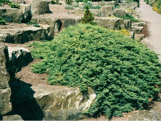 Можжевельник лежачий «Nana» - карликовый, хвойный кустарник, ценящийся за свою стелющуюся, подушковидную форму и привлекательную голубовато-зеленую хвою, которая создает эффект плотного, пушистого ковра. Благодаря миниатюрности, высокой декоративности и способности укореняться ветвями он стал излюбленным почвопокровным растением для альпинариев, рокариев, оформления склонов и передних планов хвойных композиций.Форма кроны стелющаяся, очень плотная, подушковидная. Побеги гибкие, распростертые по земле, с приподнимающимися кончиками, легко укореняются при соприкосновении с почвой, образуя плотный вечнозеленый покров. Растет медленно, годовой прирост составляет 5-8 см в ширину. Максимальные размеры во взрослом состоянии - около 0.2-0.3 м в высоту и до 1.5-2 м в диаметре. Хвоя преимущественно игольчатая, короткая, колючая, собрана в мутовки по три штуки. Цвет - яркий голубовато-зеленый или сизо-зеленый. Зимой хвоя часто приобретает легкий фиолетовый или буроватый оттенок. Плоды (шишкоягоды) шаровидные, мелкие, темно-синие с сизым налетом.