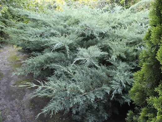 Можжевельник средний «Pfitzeriana Glauca» - популярный, раскидистый, хвойный кустарник, ценящийся за свою мощную форму и красивую голубовато-зелёную окраску хвои. Благодаря быстрому росту, высокой декоративности и неприхотливости он широко используется для создания крупных куртин, фона для композиций, декорирования склонов и в городском озеленении.Форма кроны раскидистая, широкая, воронковидная, с горизонтально расположенными скелетными ветвями и слегка поникающими концами побегов. Растет быстро, годовой прирост составляет 15-25 см в высоту и ширину. Максимальные размеры во взрослом состоянии - около 1.5-2 м в высоту и до 3-4 м в диаметре. Хвоя преимущественно игольчатая, колючая, внутри кроны может быть чешуевидной. Окрас - серебристо-голубой или сизо-зелёный, который зимой может приобретать лёгкий фиолетовый оттенок. Шишки мелкие, округлые, синевато-сизые с восковым налетом.