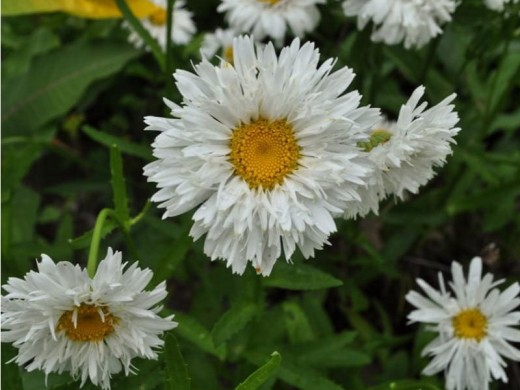 Эффектно смотрится в одиночных и групповых посадках, идеальна для букетов, долго сохраняет декоративность в срезке. Растение подходит для миксбордеров и рабаток, хорошо сочетается с васильками, флоксами, дельфиниумами и колокольчиками.Очень популярная многолетняя садовая ромашка. Растение высотой 60-70 см. На высоких стеблях располагаются махровые соцветия-корзинки белоснежной окраски диаметром 7-10 см. Цветение обильное и продолжительное с конца июня до сентября.