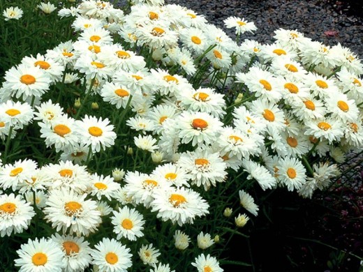 Эффектно смотрится в одиночных и групповых посадках, идеален для букетов, долго сохраняет декоративность в срезке. Растение подходит для миксбордеров и рабаток, хорошо сочетается с васильками, флоксами, дельфиниумами и колокольчиками.Высота растения 50 см, ширина — до 60 см. Цветки крупные, полумахровые и декоративные, диаметром около 10-12 см. Соцветия представлены корзинками белого цвета с жёлтыми центрами.