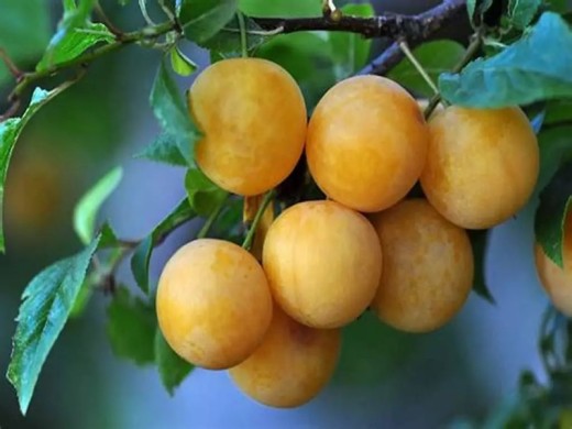 Плоды желтого цвета, достигают в весе около 10 г. Мякоть желтая, сочная. Вкус кисло-сладкий.