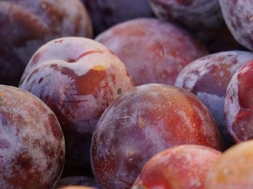 Плоды округлые, весом 100-120 гр, кожица плотная, оранжево-красная с фиолетово-лиловым отливом, мякоть сочная, вкус напоминает нечто среднее между сливой и абрикосом. Плодоношение на 2-3 год, созревание с конца августа. Наличие рядом опылителей повышает урожайность.
