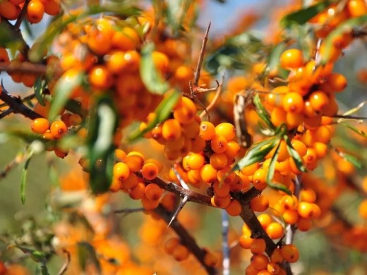 Облепиха "Ботаническая ароматная" -урожайный сорт раннего срока созревания и универсального назначения.Куст среднерослый, 3-5м, раскидистый, с зонтиковидной кроной. Колючки мягкие,на побегах расположены очень редко. Плодоношение на 2 год после посадки.