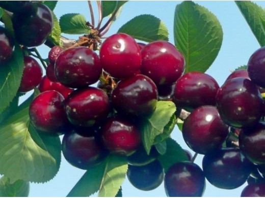 Плоды крупные и очень крупные, массой 8-10 граммов. Форма округлая, слегка приплюснутая сверху. Окраска кожицы в полной зрелости — тёмно-красная, почти бордовая, с плотной глянцевой кожицей. Мякоть тёмно-красная, плотная, очень сочная. Вкус десертный, сладкий, с едва уловимой лёгкой кислинкой и насыщенным вишнёвым ароматом. Дегустационная оценка исключительно высокая — 4.8-5.0 баллов из 5. Косточка среднего размера, отделяется хорошо. Срок созревания ранний. Первые единичные ягоды могут появиться уже на 2-3 год, а полноценное плодоношение начинается с 4-5 года. Урожайность взрослого дерева стабильная, 10-15 кг.