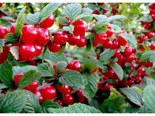 Плоды 1,5-4 г; ярко-красные, немного терпкие, с ярко выраженной кислинкой, при полном созревании становятся сладкими и ароматными. Плодоносить начинает с трех лет.