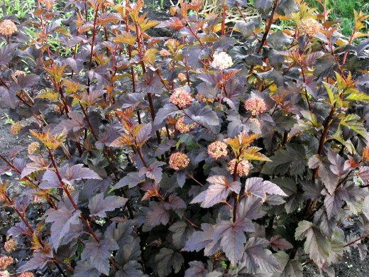 Пузыреплодник калинолистный "Red Esquire" декоративный кустарник с поникающими побегами красноватого цвета станет украшением вашего сада, он хорошо смотрится и в одиночных и в групповых посадках.Куст достигает до 1,8м в высоту и 2м в ширину. Листья очередные, блестящие, темно-пурпурные. Прирост до 30 см в год.