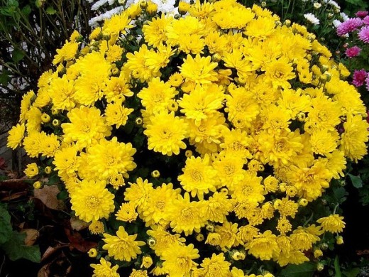 Хризантема мультифлора Брандюн (Chrysanthemum Brandune) - низкорослый сорт с цветками желтой окраски. Диаметр цветка около 5 см. Высота: 30-50 см. Начало цветения: вторая половина августа. Зимостойкость низкая.