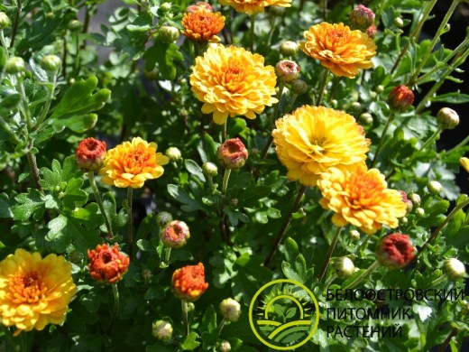 Ранний низкорослый сорт желтого цвета с оранжевой серединкой, зацветающий с середины августа, с цветками диаметром 4 см. Начало цветения: вторая половина августа. Куст компактный, шаровидный, высотой до 30-50 см.