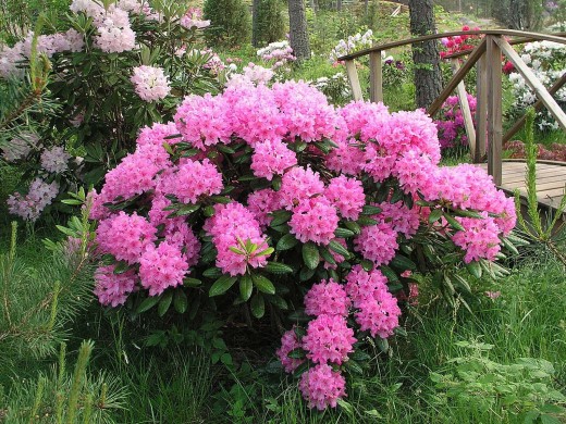 Рододендрон гибридный "Haaga" - вечнозеленый многолетник, один из красивейших сортов с крупными розовыми цветами. Он привлекательно выглядит в групповой посадке или отдельно стоящим кустом, прекрасный компаньон для хвойных растений.Взрослый куст вырастает до 1,5 метров в объеме. Крона плотная, округлая. Листья рододендрона темно-зеленые, кожистые, простые. Корневая система поверхностная.