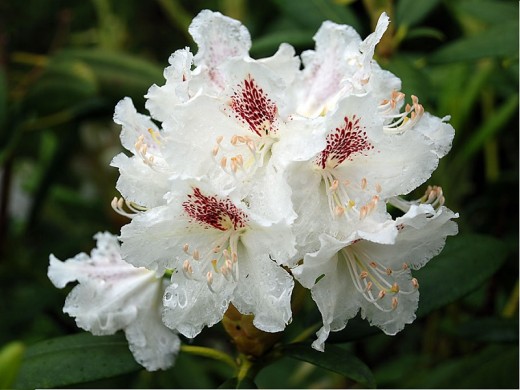 Рододендрон гибридный "P.M.A. Tigerstedt" -сорт финской селекции, поразительной красоты вечнозеленый кустарник с белыми цветками, великолепно выглядит в групповой посадке или отдельно стоящим кустом, прекрасный компаньон для хвойных растений.К 10-ти годам кустарник вырастает высотой и шириной до 1,5- 2 м. В плотной тени крона разваливается, теряет форму. Листья плотные, темно-зеленой окраски, овально- вытянутой формы до 15 см. Растет медленно, годовой прирост около 10 см.