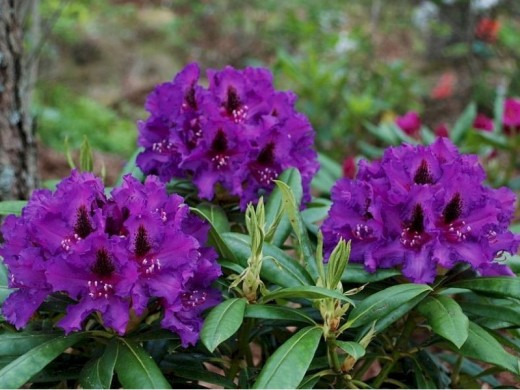 Рододендрон гибридный "Rasputin"– считается одним из самых эффектных по окраске цветков из группы фиолетовых оттенков. "Rasputin" способен стать заметным солитером в вашем саду. Великолепно выглядит в каменистых, вересковых и японских садах.Куст шаровидной формы, к 10-ти годам вырастает до 1-1.2 м, в диаметре до 1.2-1.4 м, растет медленно, около 10 см в год. Листья крупные, эллиптической формы, темно-зеленые сверху и чуть светлее снизу. Корневая система поверхностная.