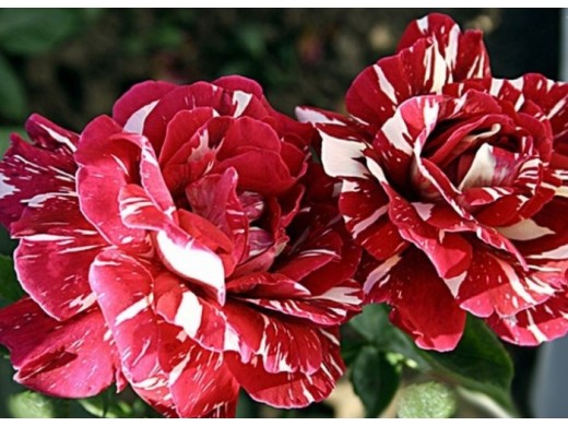 Цветок имеет малиновый окрас и белые полосы вдоль по вертикали лепестка. Чашевидные цветки зачастую в диаметре около 12 см. Сорт махровый (около 70 лепестков)