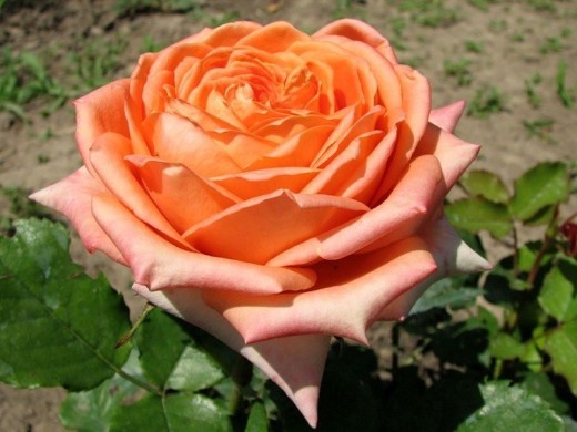 Цветки окрашены в насыщенный светло-оранжевый оттенок. Размер махровых роз достигает в диаметре до 12 см.