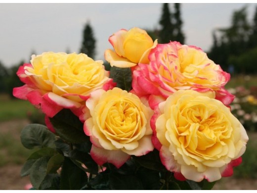 Kordes Jubilee относят к двуцветным розам, которые поражают своими необычными цветками. Данный сорт высаживают как в групповых, так и в одиночных посадках.Высота куста достигает 0.9 м, а ширина 1 м. Листья тёмно-зелёные, глянцевые.