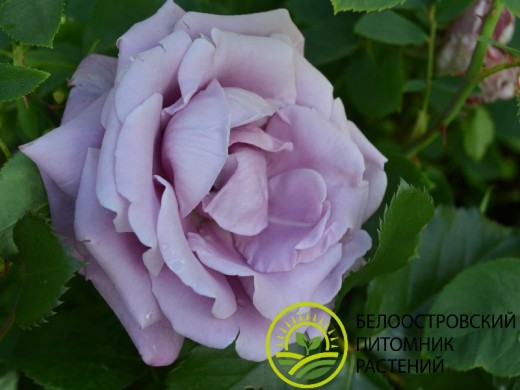 Бутоны темно-сиреневые с пурпурными полосами, овальные, заостренные. Цветки серебристо-сиреневые, чашевидные с высоким центром, махровые (40 лепестков), 10 см в диаметре.