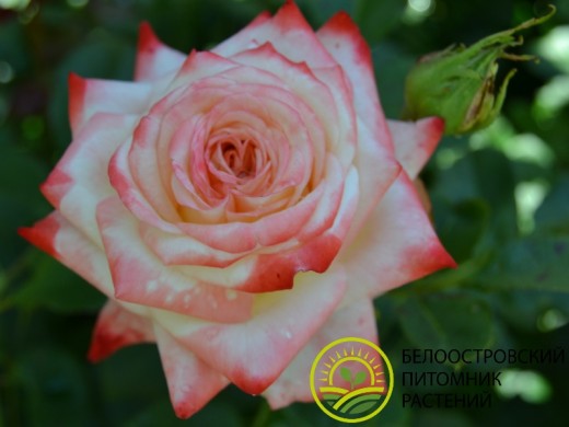 Лепестки (до 25) белые с красными краями. Лепестки расположены плотными чередующимися рядами и в раскрытом состоянии повернуты наружу. Это позволяет лучше рассмотреть красные края. Махровый цветок имеет чашевидную форму, около 14 см в диаметре.