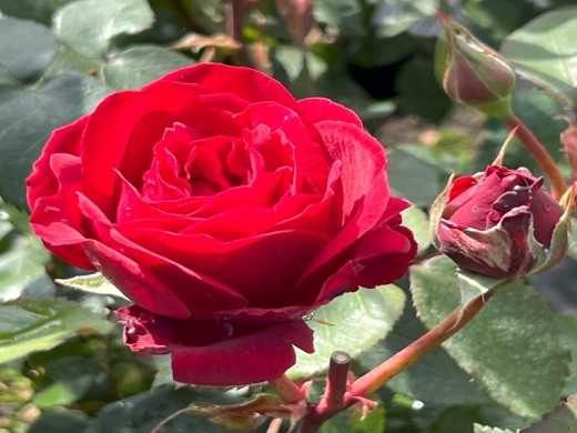 Розы окрашены в малиновый ярко-красный цвет. Чашевидные цветки имеют размер в диаметре до 7 см Сорт махровый