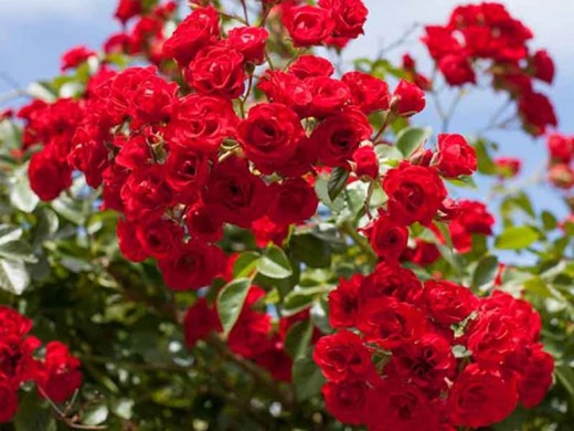 Роза штамбовая почвопокровная красная - беспроигрышный выбор для создания романтичного, обильно цветущего акцента в саду, не требующего сложного ухода. Используют в качестве эффектного солитера-деревца, для посадки в миксбордеры, патио.В штамбовой форме представляет собой деревце с плакучей, густой и очень раскидистой кроной. Побеги длинные, гибкие, красиво поникают каскадом. Общая высота растения зависит от высоты прививки (штамба), которая обычно составляет 60-90 см. Ширина кроны может достигать 120-150 см. Листва мелкая, полуглянцевая, темно-зеленая, очень обильная.