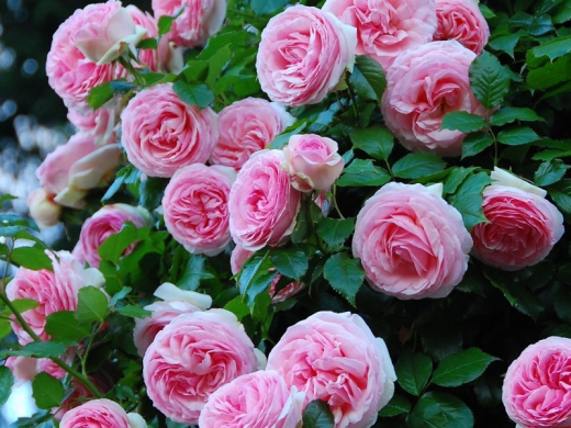 Диаметр махровых (более 40 лепестков) достигает 8 см. Основной цвет розовый. Яркий цвет в центре цветка, выцветающий к краям.