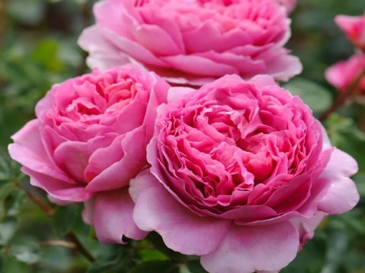 Необычайно крупные цветки 12см, теплого, светящегося розового цвета. Они густомахровые, глубоко чашевидные, окружены кругом более светлых внешних лепестков, что выглядит очень красиво.