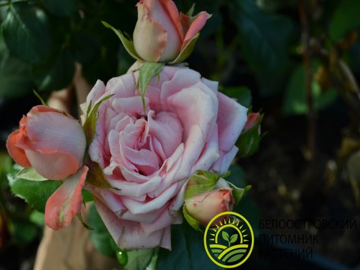 Окрас цветков включают в себя оттенки розового цвета - жемчужно-розовый и светлый лососевый. Размер бокаловидного бутона достигает в диаметре до 10 см. Сорт махровый (около 35 лепестков)