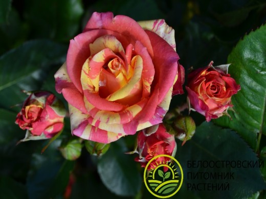 В диаметре цветки достигают 6 см. Бутоны махровые. Лепестки одновременно красные и желтые. Граница между оттенками четкая, двухцветные розы яркие и разнообразные. Форма цветка классическая.
