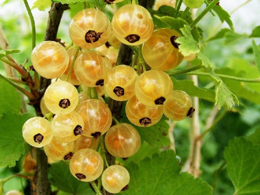 Ягоды средней массой 0,5 г, округлой формы, кремовой окраски с розовым бочком, кожица тонкая,вкус кисло-сладкий. Длина кисти до 12 см. Средняя урожайность 2,5 кг с куста. Дегустационная оценка 4,8. Период созревания август-сентябрь.
