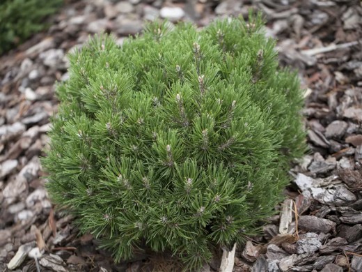 Сосна горная «Heideperle» - популярный, карликовый, хвойный кустарник, ценящийся за свою очень плотную, подушковидную или шаровидную форму и густую, ярко-зеленую хвою. Благодаря миниатюрным размерам, идеальной форме и высокой декоративности он стал излюбленным элементом для альпинариев, рокариев, вересковых садов, а также для контейнерного озеленения и создания бонсай.Форма кроны очень плотная, густая, симметричная, подушковидная или округлая, с аккуратными, короткими побегами, равномерно заполняющими пространство. Растет очень медленно, годовой прирост составляет 3-5 см. Максимальные размеры во взрослом состоянии - около 0.3-0.5 м в высоту и до 0.5-0.7 м в диаметре. Хвоя игольчатая, короткая, жесткая, насыщенного зеленого цвета, собранная в пучки по две хвоинки. Окраска сохраняется в течение всего года. Шишки образуются редко, мелкие, округлые, коричневые.
