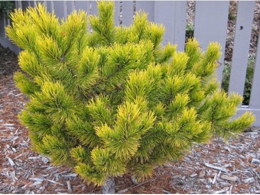 Сосна горная «Winter Gold» - популярный, карликовый, хвойный кустарник, ценящийся за свою плотную, подушковидную форму и уникальную сезонную окраску хвои, которая осенью и зимой приобретает эффектный золотисто-желтый цвет. Благодаря яркому сезонному преображению и миниатюрности он стал излюбленным акцентным растением для цветных композиций, альпинариев, вересковых садов и контейнерного озеленения.Форма кроны очень плотная, густая, симметричная, подушковидная или округлая. Побеги короткие, жесткие, равномерно расположенные, создают компактную, однородную поверхность. Растет медленно, годовой прирост составляет 5-10 см. Максимальные размеры во взрослом состоянии - около 0.5 м в высоту и до 1-1.2 м в диаметре. Хвоя игольчатая, короткая, собрана в пучки по две хвоинки. Её главная особенность - выраженная сезонная изменчивость: летом хвоя имеет свежий зеленый цвет, а с наступлением осенних холодов постепенно окрашивается в яркий золотисто-желтый оттенок, который сохраняется всю зиму, создавая эффектное «солнечное» пятно в саду. Шишки мелкие, округлые, коричневые, появляются редко.
