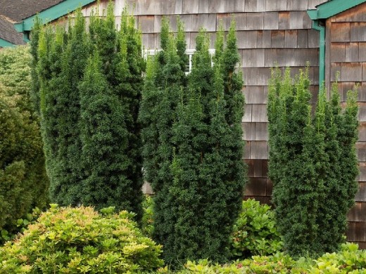 Тис средний «Hicksii» - популярный, вечнозеленый, хвойный кустарник, ценящийся за свою строгую узкоколонновидную форму, густую темно-зеленую хвою и высокую теневыносливость. Благодаря способности прекрасно переносить стрижку и плотной архитектуре кроны он стал классическим выбором для создания формальных живых изгородей, топиарных форм, а также для групповых посадок и солитеров в тенистых зонах сада.Форма кроны очень плотная, густая, симметричная, узкоколонновидная или пирамидальная, с прямыми, вертикально растущими побегами. Растет умеренно, годовой прирост составляет 15-20 см. Максимальные размеры во взрослом состоянии - около 3-4 м в высоту и до 1-1.5 м в диаметре. Хвоя игольчатая, плоская, блестящая, длиной 2-3 см, с темно-зеленой верхней стороной и более светлой нижней. Окраска сохраняется в течение всего года. Плоды (семена с присемянником) ярко-красные, мясистые, ягодообразные, диаметром до 1 см, эффектно контрастируют с хвоей. Важно помнить: все части растения, кроме красного присемянника, ядовиты.
