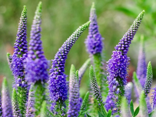 Цветет с июля ярко синими цветами собранными в колосовидные соцветия.